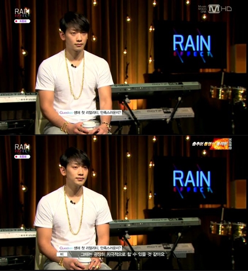 비는 23일 오후 방송된 Mnet '레인이펙트'에서 "생애 첫 리얼리티지만 불만족스러웠다"고 밝힌 뒤 "잘 못 보여드린 것 같아 더 자극적이고 디테일했으면 좋았을 것"이라 털어놨다.