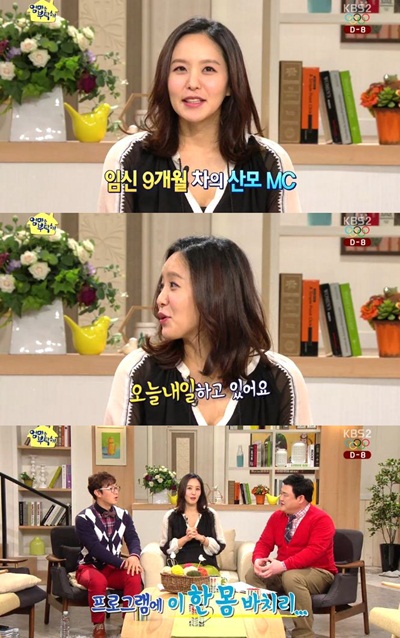 박지윤은 30일 오후 방송된 KBS 2TV '엄마를 부탁해'에서 "지금 임신 9개월"이라며 "(출산이) 오늘, 내일한다"고 밝혔다.