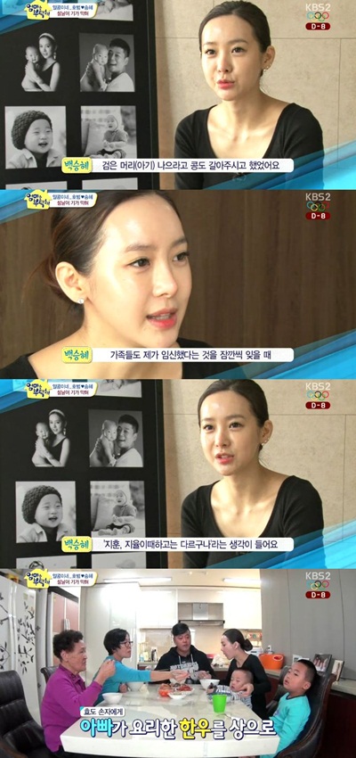 백승혜는 30일 오후 방송된 KBS 2TV '엄마를 부탁해'에서 "셋째를 임신하니 임신했다는 사실을 까먹을 때가있다"고 말했다.
