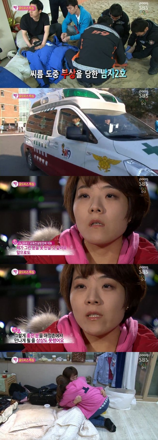 이날 방송에서 남자 2호는 여자 2호와의 데이트권을 획득하기 위해 무리하게 씨름 경기를 하다 다리에 큰 부상을 입었다.
