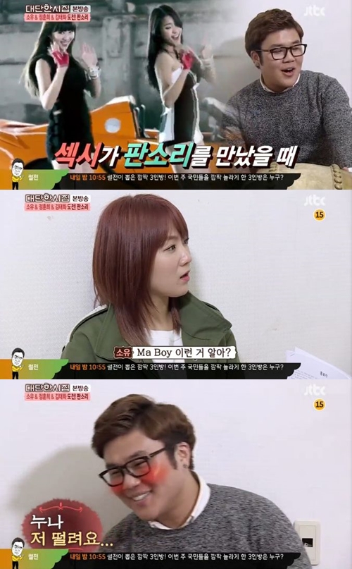 유태평양 군이 걸쭉한 목소리로 씨스타의 'Ma Boy'를 부르자 소유도 '흥보가'를 섹시버전으로 소화해 냈다. 특히 소유는 특유의 허스키한 음성과 요염한 손짓으로 놀보를 유혹하는 상황극까지 곁들여 유태평양 군을 놀라게 했다.