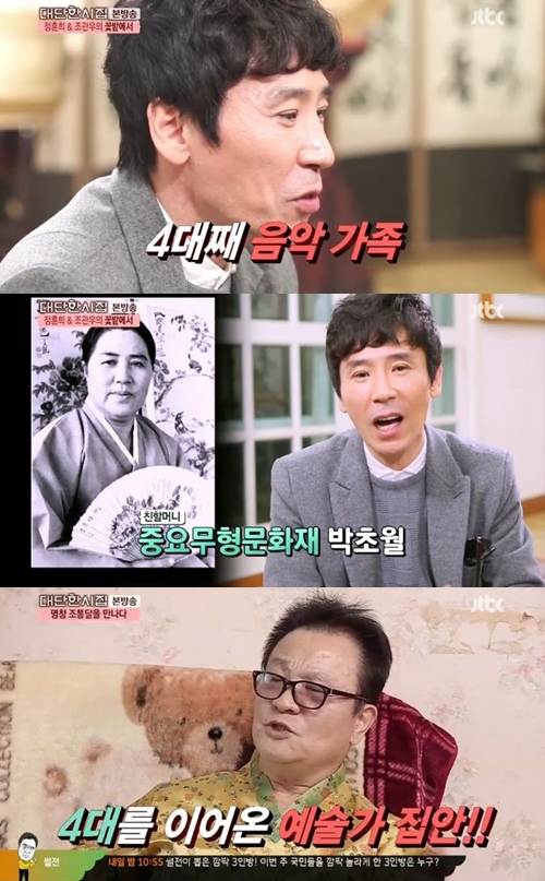 이날 조관우는 "친할머니가 중요무형문화재인 故 박초월이고, 아버지는 인간문화재인 조통달"이라며 "나도 가수를 하고 있고, 아들 조휘도 음악 쪽으로 진로를 정한 상태"라고 밝혔다.