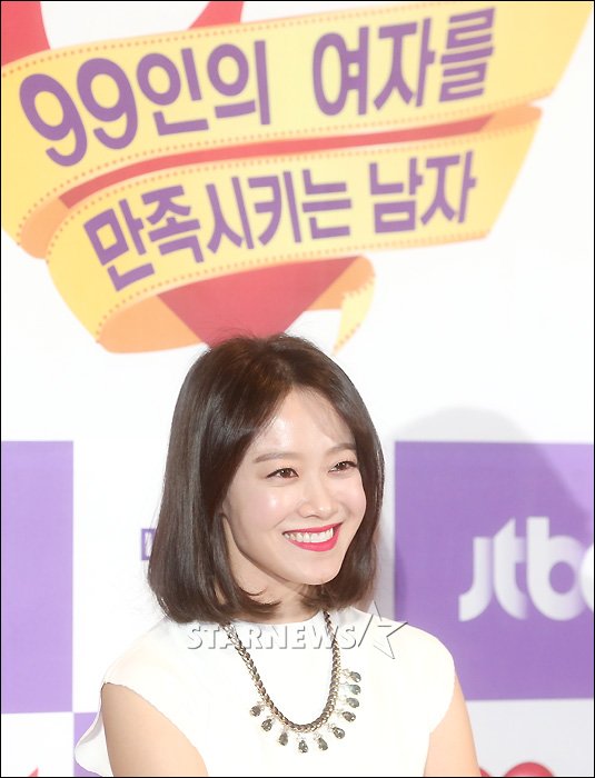 방송인 문지애가 20일 오후 서울 중구 호암아트홀에서 열린 JTBC 새 예능 '99인의 여자를 만족시키는 남자' 제작발표회에서 남편의 점수를 묻는 질문에 97점이라 말하고 있다.