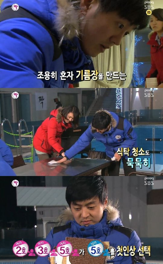 26일 오후 방송된 SBS 예능프로그램 '짝'에서 남자 5호는 묵묵하게 여자 출연자들을 배려하는 모습을 보였다. 결과적으로 첫인상 선택에서 많은 호감을 얻었다.