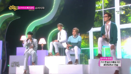 한편 이날 '쇼! 음악중심'에는 소녀시대 외에도 투하트 소유정X정기고 씨엔블루 선미 오렌지캬라메멜 B.A.P 비투비 레이디스코드 넬 100% 소리얼 손헌수 박수진 1PS 멜로디데이 태원 루나플라이 등이 출연해 화려한 무대들을 선사했다.