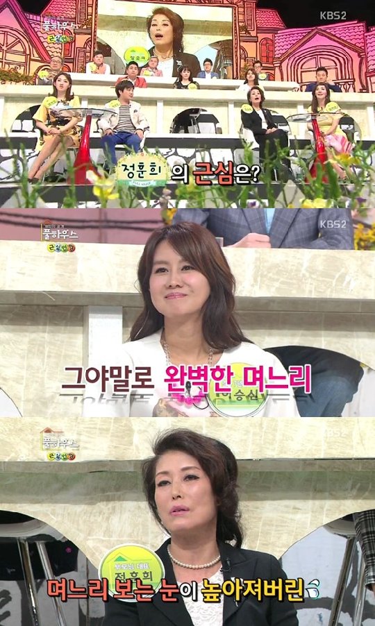 정훈희는 28일 오후 방송된 KBS 2TV '가족의 품격-풀하우스'에 출연, "가상 며느리였던 소유 때문에 며느리 보는 눈이 높아졌다"고 말했다.