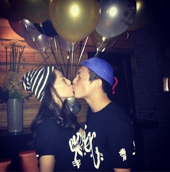 공개된 사진에는 진관희와 여자친구 훙원안(안젤라)이 서로 마주보고 눈을 꼭 감은 채 뽀뽀를 하고 있는 모습이 담겨져 있다.