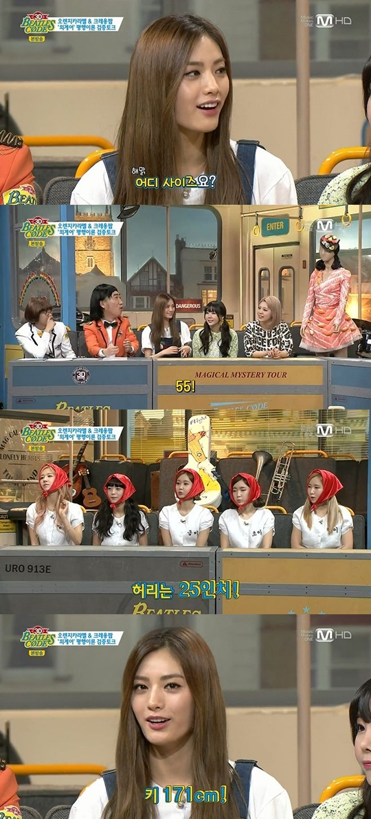 나나는 8일 오후 방송된 Mnet '비틀즈코드 3D'에 출연, 남자 MC들이 집요하게 신체사이즈를 묻자 이를 과감히 공개해 눈길을 끌었다.