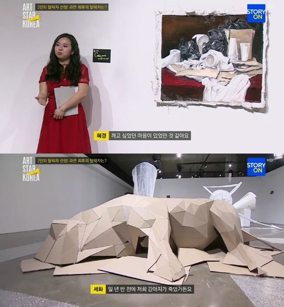 11일 오후 방송된 케이블채널 스토리온 '아트스타 코리아'( 이하 '아스코') 6회에서는 팀 미션이 진행, 윤세화·최혜경 2명이 최종 탈락했다.