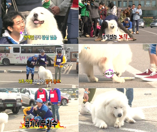 '국민 애견' 상근이의 아들 호야가 등장, 아빠 못지않은 예능감을 발휘했다.