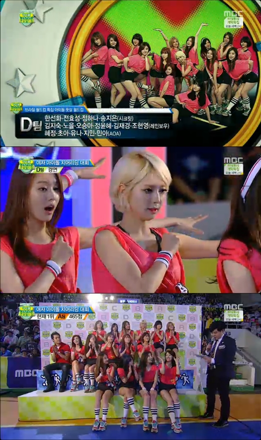 걸그룹 멤버들의 치어리딩 대회에서 시크릿, 레인보우, AOA등이 속한 D팀이 우승을 차지했다.