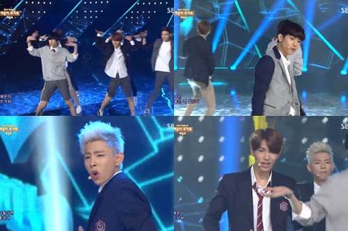 헤일로는 29일 오후 방송된 SBS 가요순위 프로그램 '인기가요'에서 데뷔곡 '체온이 뜨거워'를 선보였다.