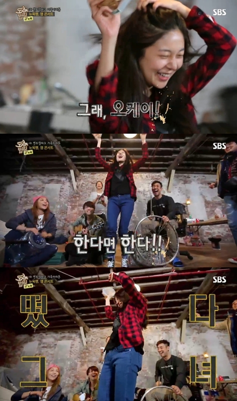 백진희는 잠시 망설이다 중앙으로 나와 몸을 신나게 흔들며 반전 골반 댄스를 선보였고, 뉴욕팸 멤버 정경호와 이천희는 그런 백진희에 환호했다.