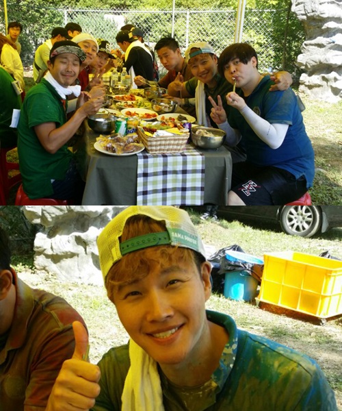 공개된 사진에는 이날 게스트 출연한 핫젝갓알지 문희준을 비롯해 하하, 개리 등이 삼계탕을 먹으며 즐거워하고 있다.