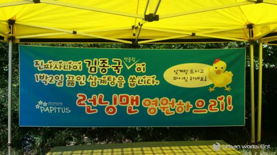 30일 소속사 얼반웍스이엔티에 따르면 김종국의 팬클럽 파피투스는 지난 29일 '런닝맨' 촬영이 진행된 경기도 광릉 분재 예술공원에서 중복에 맞춰 촬영장 전 스태프에게 삼계탕 150인분을 선물했다.