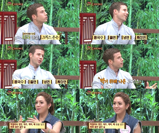 미국 출신 방송인 크리스 존슨이 한국음식에 대한 애착을 보였다.