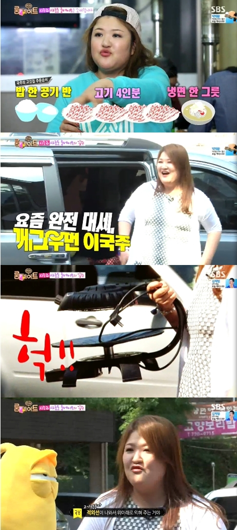 이국주는 21일 첫 방송된 SBS '일요일이 좋다-룸메이트 시즌2'에서 고기에 대한 애정을 숨기지 않았다. 뿐만 아니라 "고기 불판을 가져왔다"고 밝혀 멤버들을 당황시켰다.