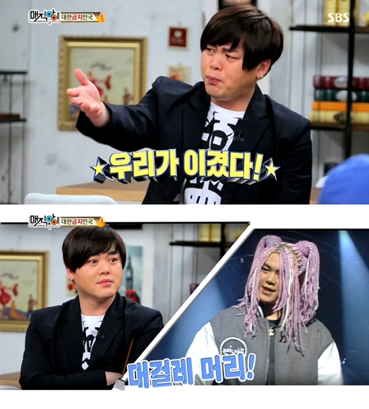 문희준은 이어 "그렇게 노력한 끝에 염색 규제가 풀렸다"며 "지금 GD 네가 총 천연색으로 염색할 수 있는 것은 나의 피땀 어린 노력"이라고 의기양양하게 말했다.