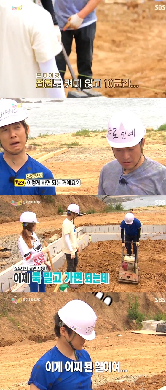 5일 오후 방송된 SBS 예능 프로그램 '에코빌리지-즐거운 家(이하 '즐거운 가')에서는 집의 기초 터를 다지기 위해 고군분투하는 멤버들의 모습이 그려졌다.