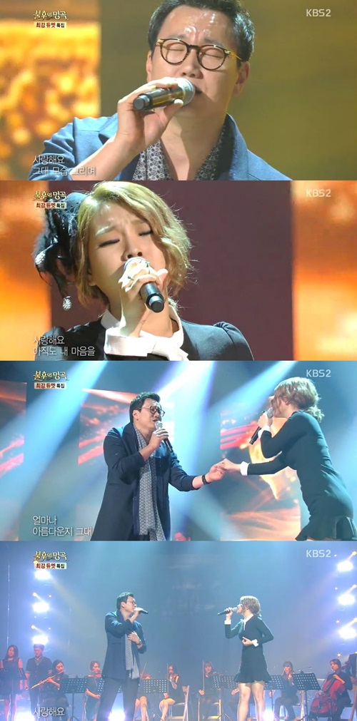 가수 더원과 손승연이 달콤한 노래로 '불후의 명곡' 무대를 사랑에 빠지게 했다.
