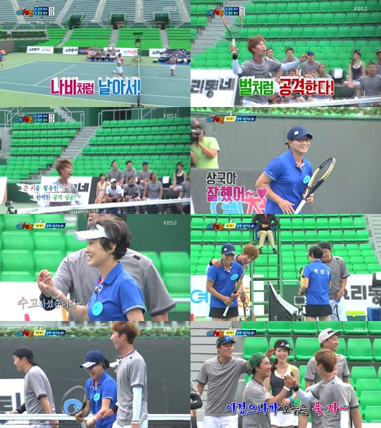 14일 오후 방송된 KBS 2TV '우리동네 예체능'에서는 상국-숙자팀과 형돈-양자팀의 테니스 경기장면이 전파를 탔다.