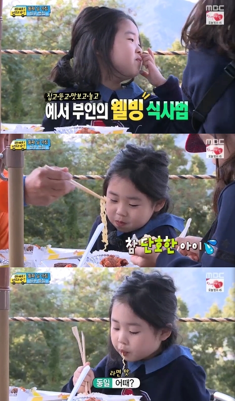 뿐만 아니라 홍예서는 반찬을 먹을 때에도 남달랐다. 서툰 젓가락질이지만 차분하게 차근차근 하면서 식사를 이어갔다. 이런 예서의 모습에 성동일과 정웅인도 신기한 기색을 감추지 못했다.