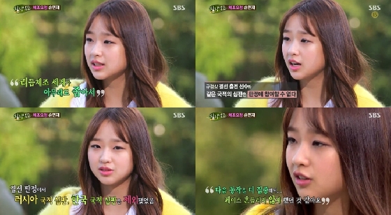 이어 손연재는 "대신 시합 때 코치선생님을 볼 수가 없었다. 말도 한 마디 걸지 못 한다"며 "심판을 보시느라 저한테 코칭을 못 해 주시니까 힘들기도 하다"고 설명했다.