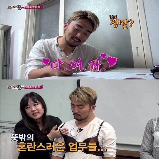 유병재 작가가 '오늘부터 출근'에서 속옷 회사에 취직해 브래지어를 입었다.