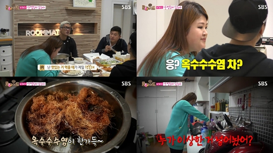 '룸메이트'의 개그우먼 이국주가 배우 배종옥이 끓여놓은 옥수수 수염차를 버렸다.
