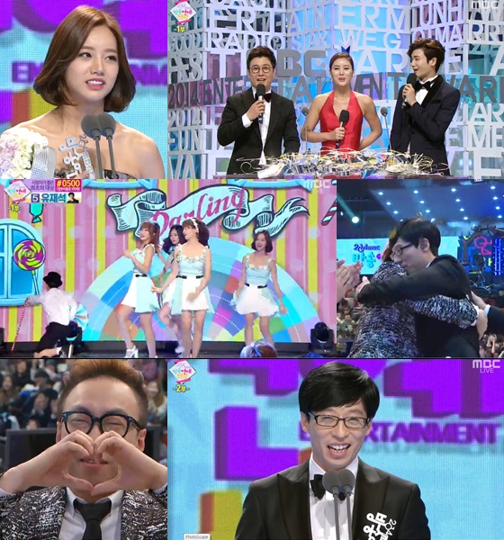 지난 29일 오후 서울시 마포구 상암MBC 공개홀에서 2014 MBC 방송연예대상 시상식이 열렸다. 이날 시상식에서는 유재석이 '무한도전'으로 대상을 수상했다.