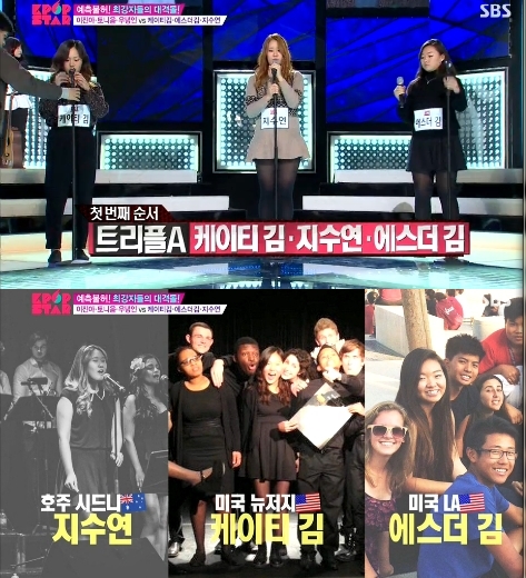 4일 방송된 SBS '일요일이 좋다-서바이벌 오디션 K팝스타 시즌4'에서는 본선 3라운드 콜라보레이션 미션이 펼쳐졌다. 케이티김, 지수연, 에스더 김이 뭉친 트리플에이는 마이클 잭슨의 'Beat it'을 택해 미션에 임했다.