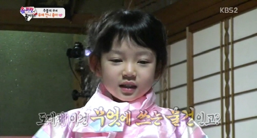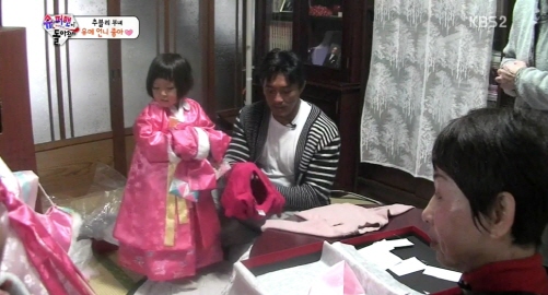 18일 KBS 2TV '해피선데이-슈퍼맨이 돌아왔다'(이하 '슈퍼맨') 61회 '무럭무럭 자란다' 편에서 추사랑은 아빠 추성훈과 새해 인사를 위해 일본 교토에 있는 외할머니 댁에 방문했다.