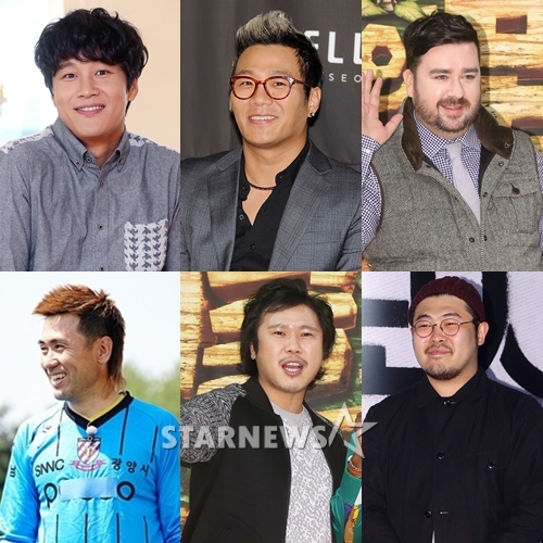차태현, 윤민수, 샘 해밍턴, 김기방, 육중완, 김병지(사진 왼쪽 위부터 시계방향으로)/사진=스타뉴스 및 KBS(김병지 사진)
