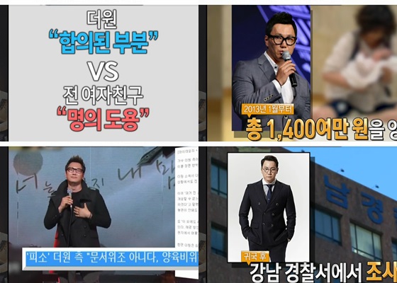 이날 방송에서는 "명의를 도용했다"고 주장하는 더원의 전 여자친구와 "이미 합의가 된 부분이다"라고 주장하는 더원 측의 입장을 비교했다.