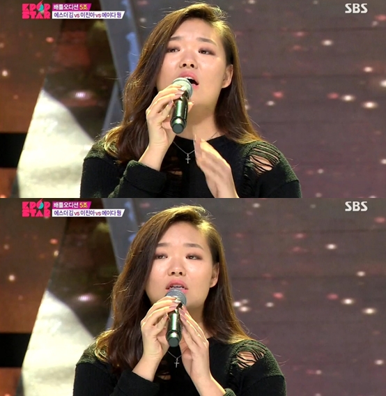 에스더 김은 15일 오후 방송된 SBS 오디션 프로그램 '일요일이 좋다-K팝 스타 시즌4'(K팝 스타4')에서 이소라의 '난 행복해'로 이진아와 에이다 웡가 톱 10 진출을 위한 대결을 펼쳤다.