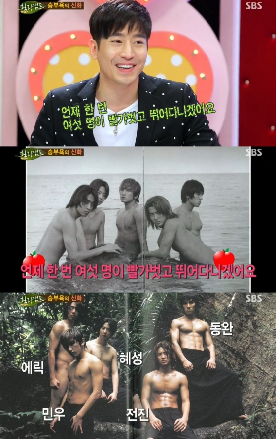 먼저 에릭이 누드화보에 대해 말문을 열었다. 그는 "회사에서 강압적으로 시키는 분위기는 아니었다. 처음에는 뭐지 싶었는데 괜한 오기가 발동했다. 사람이 살면서 평생에 한 번씩은 꼭 해보고 싶은 게 있다. 언제 한 번 여섯 명이서 벌거벗고 뛰어다니겠나"고 말한 뒤, 종종 화제가 됐던 누드화보를 공개했다.