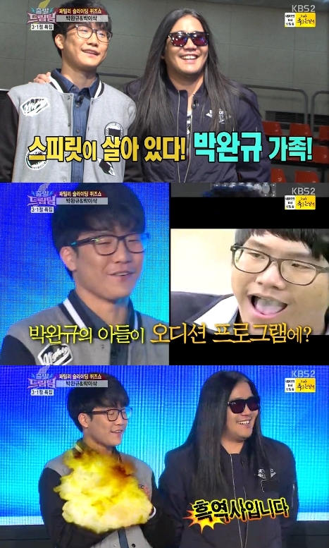 1일 방송된 KBS 2TV '출발 드림팀 시즌2'(이하 '드림팀')는 삼일절 특집으로 역사 퀴즈와 함께하는 패밀리 슬라이딩 퀴즈쇼가 펼쳐졌다. 박완규는 박이삭과 함께 출연해 퀴즈를 풀었다.