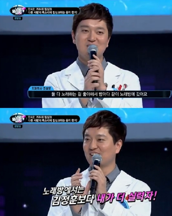 '너의 목소리가 보여'에 그룹 UN 김정훈의 치과대학 입학 동기인 '치과의사 조성모'(고광욱)가 출연해 자신의 노래 실력이 김정훈보다 뛰어나다고 말해 화제를 모았다.