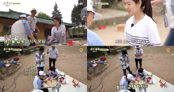 29일 오후 방송된 케이블채널 tvN 예능프로그램 '삼시세끼 정선편'에서는 박신혜와 김광규가, 김광규가 잡아온 송사리를 손질하는 모습이 그려졌다.