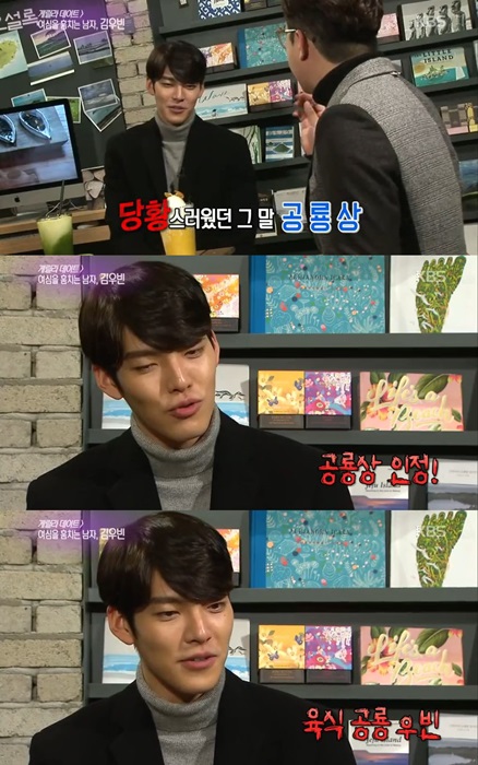이날 방송에서 김우빈은 리포터로부터 "공룡상에 대한 질문을 좀 하겠다. 처음에는 좀 (듣기) 싫으셨나"라는 질문을 받았다.
