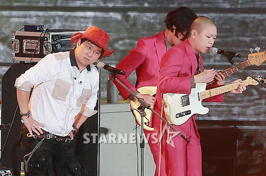 오대천왕 정형돈, 혁오 밴드가 13일 오후 강원도 평창군 알펜시아 리조트 스키점프대에서 열린 MBC '무한도전-영동고속도로가요제'에서 멋진 공연을 펼치고 있다.