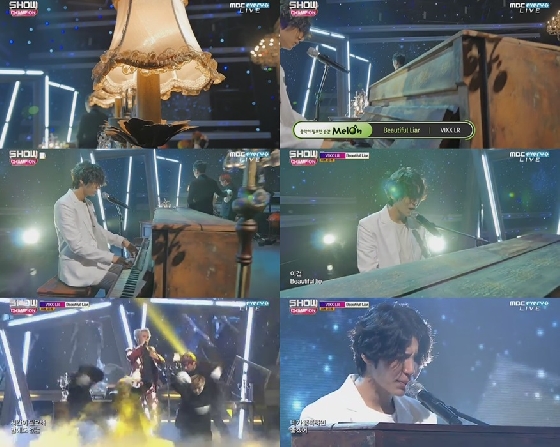 빅스 LR은 19일 오후 방송된 MBC 에브리원 음악순위 프로그램 '쇼! 챔피언'에서 '뷰티풀 라이어(Beautiful Liar)'로 무대를 꾸몄다.