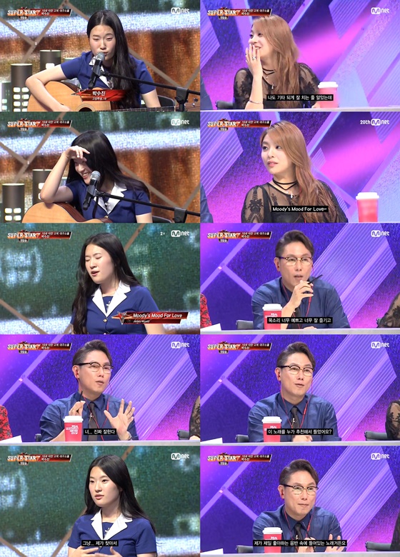 '슈퍼스타 K7' 대구 출신의 파란 교복을 입은 박수진이 백지영의 호평 속에 합격했다.