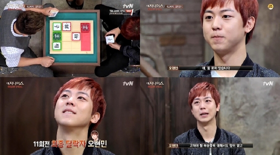 오현민은 5일 오후 방송된 tvN '더 지니어스:그랜드 파이널' 11회에서 장동민과 데스 매치에서 패배해 탈락했다.