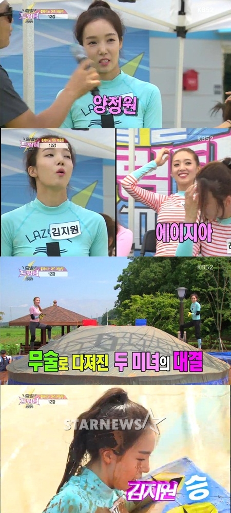 '드림팀2'의 '여자 리키김' 김지원과 가수 겸 연기자 에이지아가 여자 최강자전 첫 경기를 치뤘다.