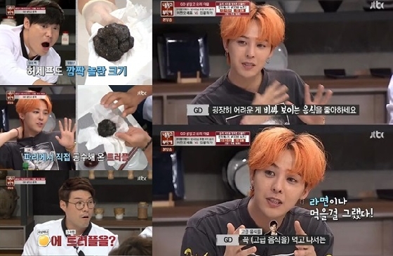 이어 공개된 지드래곤의 냉장고에는 갈치, 초대형 전복을 비롯해 '세계 3대 진미'로 불리는 트러플(송로버섯), 푸아그라, 캐비아 등 값비싼 재료들이 가득했다. 셰프들도 지드래곤의 냉장고를 보고 엄지를 치켜세웠을 정도.
