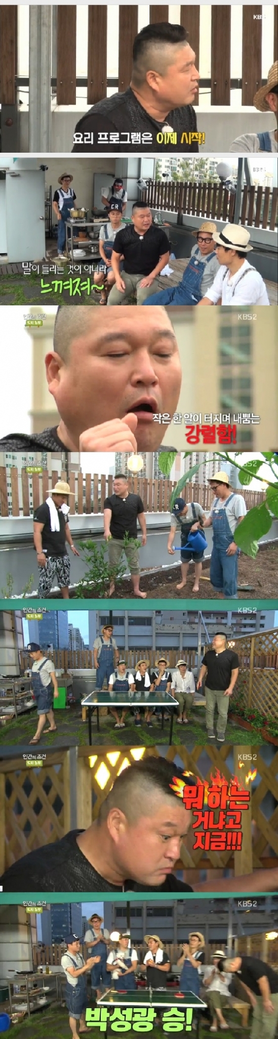 특히 후배 개그맨인 박성광과 탁구대결도 인상적이었다. 전직 씨름 천하장사 출신이자 현재 KBS 2TV '우리동네 예체능'에서 맹활약 중인 강호동에게 도전장을 내민 박성광은 "주눅 들었다"며 "오늘 예능실력을 발전시키기 위해 미친 짓 한번 해 보겠다"고 말했다.