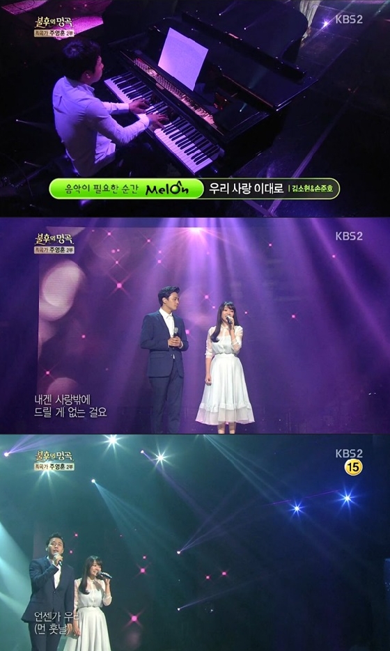 이날 방송에서 첫 번째로 무대에 오른 팀은 연예계 대표 잉꼬부부인 김소현·손준호였다. 김소현·손준호 부부는 주영훈의 '우리 사랑 이대로'를 선곡했다.