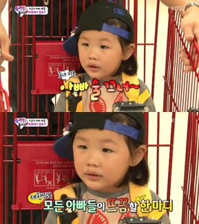 이날 엄태웅과 엄지온은 함께 장을 보러 갔다. 이들은 지온이가 먹을 빵을 사고 다른 코너를 둘러봤다.