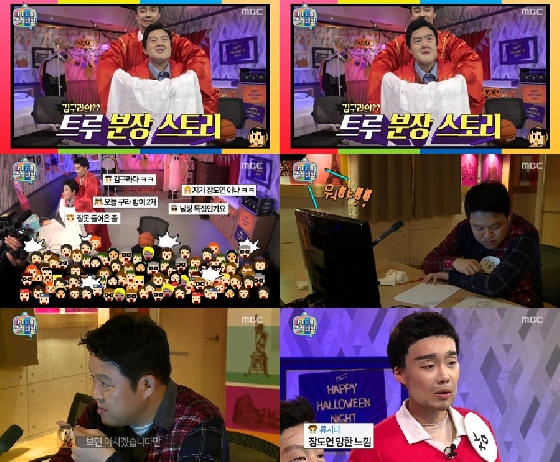 과장된 그들의 분장이 보는 이들의 웃음을 유발했다. 그러나 김구라는 "저거 오래 못 간다"며 "앞에 스태프들이 웃고 있지 않다"고 지적해 웃음을 자아냈다.